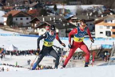 Edvin ANGER, SWE, bib number 3-4, action photo, Men's 4x7.5km Relay Classic/Free at Cross-Country Olympic Winter Games 2025-26 in Milano Cortina, Italy, 2026-02-15, Photo Credit: action press / Julia Piatkowska AG KARMAPRESS-AG ALDO LIVERANI SAS