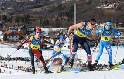 Remi DROLET, CAN, Arsi RUUSKANEN, FIN, John Steel HAGENBUCH, USA, Mathis DESLOGES, FRA, action photo, Men's 4x7.5km Relay Classic/Free at Cross-Country Olympic Winter Games 2025-26 in Milano Cortina, Italy, 2026-02-15, Photo Credit: action press / Julia Piatkowska AG KARMAPRESS-AG ALDO LIVERANI SAS