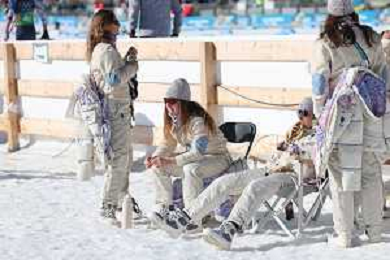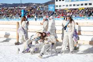 Women team relay of France, event photo, Men's 4x7.5km Relay Classic/Free at Cross-Country Olympic Winter Games 2025-26 in Milano Cortina, Italy, 2026-02-15, Photo Credit: action press / Julia Piatkowska AG KARMAPRESS-AG ALDO LIVERANI SAS
