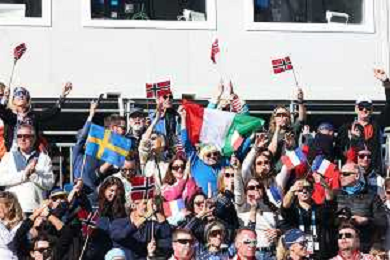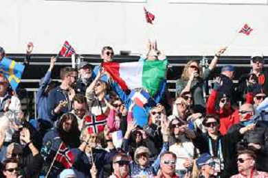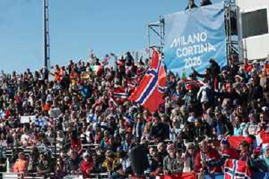 Fans of Norway and Italy, event photo, Men's 4x7.5km Relay Classic/Free at Cross-Country Olympic Winter Games 2025-26 in Milano Cortina, Italy, 2026-02-15, Photo Credit: action press / Julia Piatkowska / KarmaPress - AGENZIA ALDO LIVERANI SAS