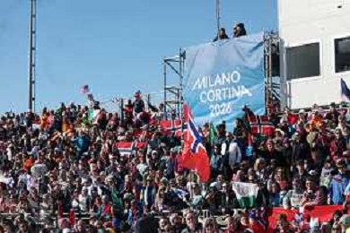 Fans, event photo, Men's 4x7.5km Relay Classic/Free at Cross-Country Olympic Winter Games 2025-26 in Milano Cortina, Italy, 2026-02-15, Photo Credit: action press / Julia Piatkowska / KarmaPress - AGENZIA ALDO LIVERANI SAS