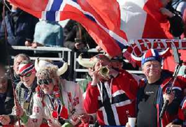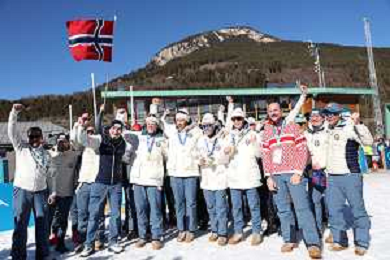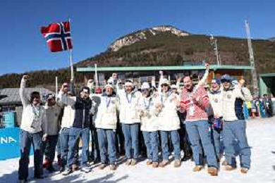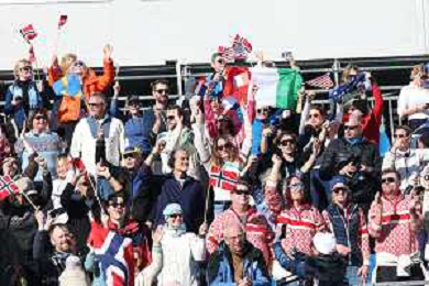 Fans of norway, event photo, Men's 4x7.5km Relay Classic/Free at Cross-Country Olympic Winter Games 2025-26 in Milano Cortina, Italy, 2026-02-15, Photo Credit: action press / Julia Piatkowska / KarmaPress - AGENZIA ALDO LIVERANI SAS