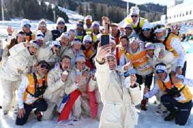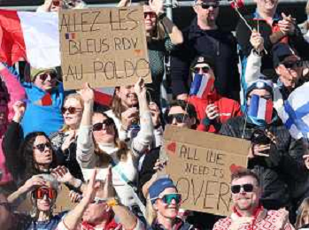 Fans of France, event photo, Men's 4x7.5km Relay Classic/Free at Cross-Country Olympic Winter Games 2025-26 in Milano Cortina, Italy, 2026-02-15, Photo Credit: action press / Julia Piatkowska / KarmaPress - AGENZIA ALDO LIVERANI SAS