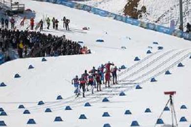 Start, event photo, Men's 4x7.5km Relay Classic/Free at Cross-Country Olympic Winter Games 2025-26 in Milano Cortina, Italy, 2026-02-15, Photo Credit: action press / Julia Piatkowska / KarmaPress - AGENZIA ALDO LIVERANI SAS