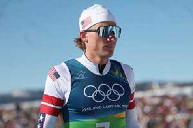 Gus SCHUMACHER, USA, bib number 7-2, action photo, Men's 4x7.5km Relay Classic/Free at Cross-Country Olympic Winter Games 2025-26 in Milano Cortina, Italy, 2026-02-15, Photo Credit: action press / Julia Piatkowska / KarmaPress - AGENZIA ALDO LIVERANI SAS
