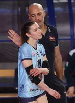 IMOLA 15 02 2026 CLAI IMOLA PALLAVOLO-CLUB ITALIA SERIE A2 2-3 NELLA FOTO ARIANNA GAMBINI E ALLENATORE SIMONE BENDANDI CLAI IMOLA ©SANNA - AGENZIA ALDO LIVERANI SAS