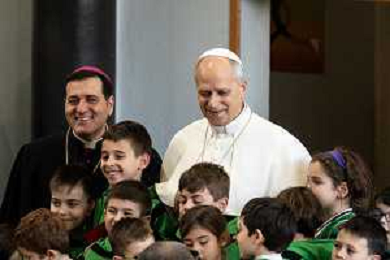 Roma - 15 Febbraio 2026 Sua Santita’ Papa Leone XIV visita la Parrocchia Santa Maria Regina Paris di Ostia Nella Foto: Papa Leone XIV Foto Credit: Andrea Bracaglia- AGENZIA ALDO LIVERANI SAS