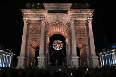 Olimpiadi Milano Cortina 2026 nella foto il braciere Olimpico all'Arco della Pace Milano 15-02-2026 XXV Giochi Olimpici Invernali - Milano Cortina 2026 foto Roberto Garavaglia/Agenzia Aldo Liverani sas