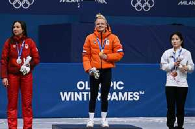TVPG Olimpiadi invernali Milano Cortina 2026, short track 1000 metri femminile finale, nella foto Velzeboer Xandra, medaglia d'oro, Sarault Courtney, medaglia d'argento, Kim Gil- Li , medaglia di bronzo, 6/22-02-2026 Milano ©TVPG Pasquale Golia - AGENZIA ALDO LIVERANI SAS ITALY ONLY EDITORIAL USE ONLY