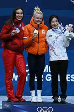 TVPG Olimpiadi invernali Milano Cortina 2026, short track 1000 metri femminile finale, nella foto Velzeboer Xandra, medaglia d'oro, Sarault Courtney, medaglia d'argento e Kim Gil-li, medaglia di bronzo, 6/22-02-2026 Milano ©TVPG Pasquale Golia - AGENZIA ALDO LIVERANI SAS