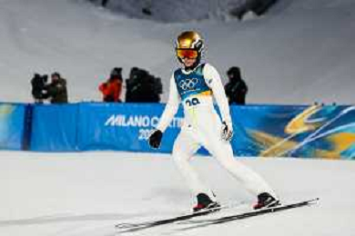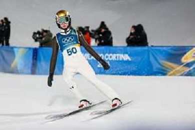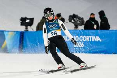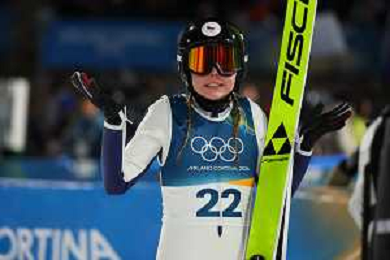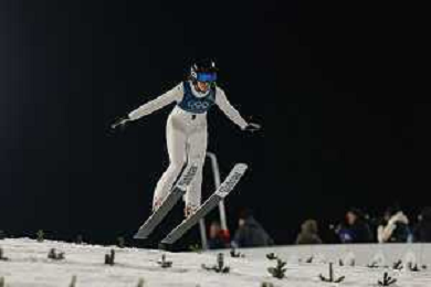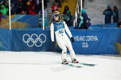 Sofia MATTILA, FIN, Bib number 12, Run 1, Action Photo, Women's Large Hill HS141 at Ski Jumping Olympic Winter Games 2025-26 in Milano Cortina, Italy, 2026-02-15, Photo Credit: action press / Julia Piatkowska / KarmaPress - AGENZIA ALDO LIVERANI SAS ITALY ONLY EDITORIAL USE ONLY