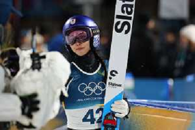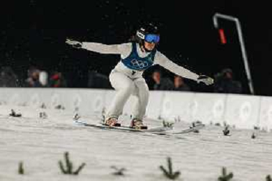 Paige JONES, USA, Bib number 24, Trial Run, Action Photo, Women's Large Hill HS141 at Ski Jumping Olympic Winter Games 2025-26 in Milano Cortina, Italy, 2026-02-15, Photo Credit: action press / Julia Piatkowska / KarmaPress - AGENZIA ALDO LIVERANI SAS ITALY ONLY EDITORIAL USE ONLY