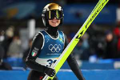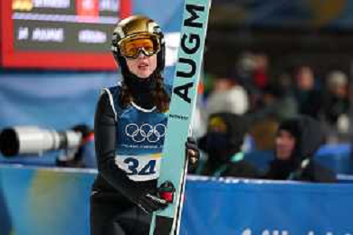 Jessica MALSINER, ITA, Bib number 4, Run 1, Action Photo, Women's Large Hill HS141 at Ski Jumping Olympic Winter Games 2025-26 in Milano Cortina, Italy, 2026-02-15, Photo Credit: action press / Julia Piatkowska / KarmaPress - AGENZIA ALDO LIVERANI SAS ITALY ONLY EDITORIAL USE ONLY
