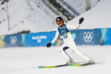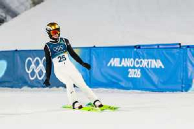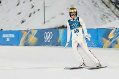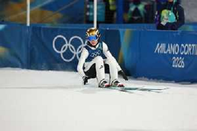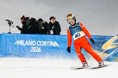Delia Anamaria FOLEA, ROU, Bib number 1, Run 1, Action Photo, Women's Large Hill HS141 at Ski Jumping Olympic Winter Games 2025-26 in Milano Cortina, Italy, 2026-02-15, Photo Credit: action press / Julia Piatkowska / KarmaPress - AGENZIA ALDO LIVERANI SAS ITALY ONLY EDITORIAL USE ONLY