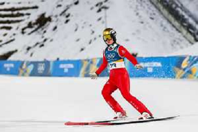 Ping ZENG, CHN, Bib number 36, Trial Run, Action Photo, Women's Large Hill HS141 at Ski Jumping Olympic Winter Games 2025-26 in Milano Cortina, Italy, 2026-02-15, Photo Credit: action press / Julia Piatkowska / KarmaPress - AGENZIA ALDO LIVERANI SAS ITALY ONLY EDITORIAL USE ONLY