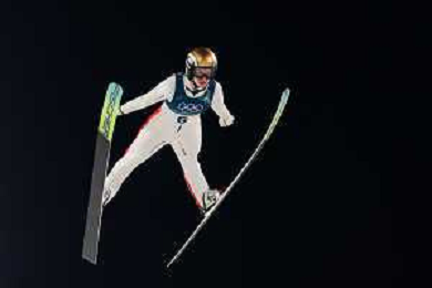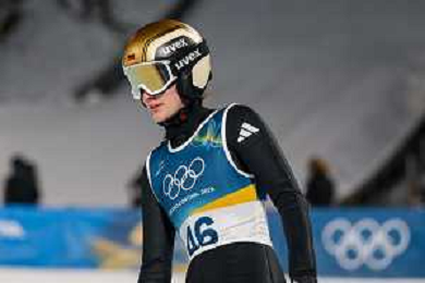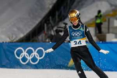 Katharina SCHMID, GER, Bib number 43, Trial Run, Action Photo, Women's Large Hill HS141 at Ski Jumping Olympic Winter Games 2025-26 in Milano Cortina, Italy, 2026-02-15, Photo Credit: action press / Julia Piatkowska / KarmaPress - AGENZIA ALDO LIVERANI SAS ITALY ONLY EDITORIAL USE ONLY