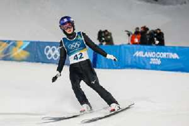 Annika BELSHAW, USA, Bib number 27, Trial Run, Action Photo, Women's Large Hill HS141 at Ski Jumping Olympic Winter Games 2025-26 in Milano Cortina, Italy, 2026-02-15, Photo Credit: action press / Julia Piatkowska / KarmaPress - AGENZIA ALDO LIVERANI SAS ITALY ONLY EDITORIAL USE ONLY