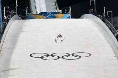 Abigail STRATE, CAN, Bib number 45, Trial Run, Action Photo, Women's Large Hill HS141 at Ski Jumping Olympic Winter Games 2025-26 in Milano Cortina, Italy, 2026-02-15, Photo Credit: action press / Julia Piatkowska / KarmaPress - AGENZIA ALDO LIVERANI SAS ITALY ONLY EDITORIAL USE ONLY