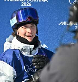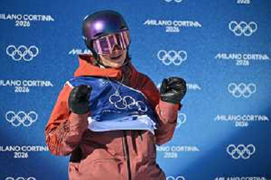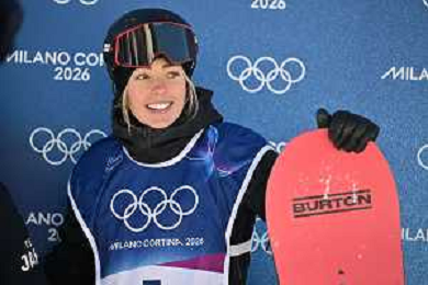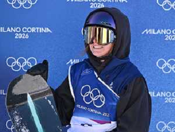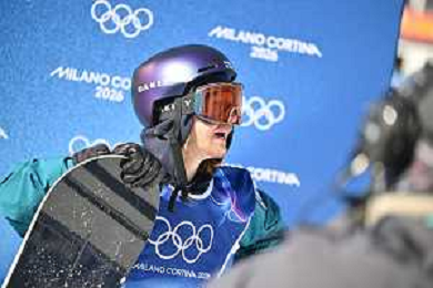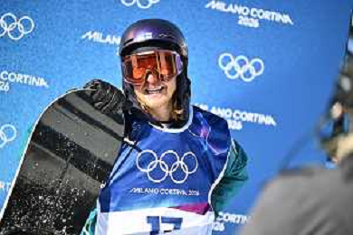 Zoi Sadowski Synnott, NZL, Bib No: 1, Action Photo, Women's Slopestyle Qualification at Snowboard Olympic Winter Games 2025-26 in Milano-Cortina, Italy, 2026-02-15, Photo Credit: action press / Christian Stadler / KarmaPress - AGENZIA ALDO LIVERANI SAS ITALY ONLY EDITORIAL USE ONLY