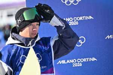 Su Yiming, CHN, Bib No: 1, Action Photo, Men's Slopestyle Qualification at Snowboard Olympic Winter Games 2025-26 in Milano-Cortina, Italy, 2026-02-15, Photo Credit: action press / Christian Stadler / KarmaPress - AGENZIA ALDO LIVERANI SAS ITALY ONLY EDITORIAL USE ONLY