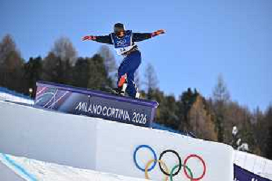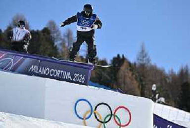 Oliver Martin, USA, Bib No: 2, Action Photo, Men's Slopestyle Qualification at Snowboard Olympic Winter Games 2025-26 in Milano-Cortina, Italy, 2026-02-15, Photo Credit: action press / Christian Stadler / KarmaPress - AGENZIA ALDO LIVERANI SAS ITALY ONLY EDITORIAL USE ONLY