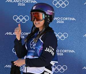Kokomo Murase, JPN, Bib No: 3, Action Photo, Women's Slopestyle Qualification at Snowboard Olympic Winter Games 2025-26 in Milano-Cortina, Italy, 2026-02-15, Photo Credit: action press / Christian Stadler / KarmaPress - AGENZIA ALDO LIVERANI SAS ITALY ONLY EDITORIAL USE ONLY
