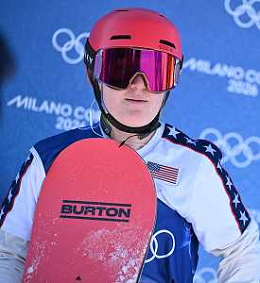 Jessica Perlmutter, USA, Bib No: 19, Action Photo, Women's Slopestyle Qualification at Snowboard Olympic Winter Games 2025-26 in Milano-Cortina, Italy, 2026-02-15, Photo Credit: action press / Christian Stadler / KarmaPress - AGENZIA ALDO LIVERANI SAS ITALY ONLY EDITORIAL USE ONLY