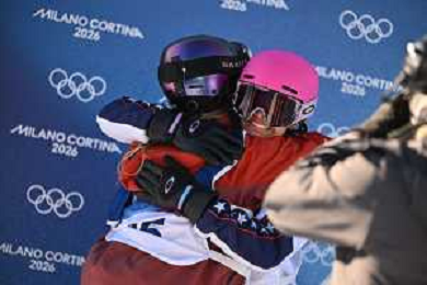 Jessica Perlmutter, USA, Bib No: 19, Action Photo Hahna Norman, USA, Bib No: 16, Action Photo , Women's Slopestyle Qualification at Snowboard Olympic Winter Games 2025-26 in Milano-Cortina, Italy, 2026-02-15, Photo Credit: action press / Christian Stadler / KarmaPress - AGENZIA ALDO LIVERANI SAS ITALY ONLY EDITORIAL USE ONLY