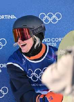 Romy van Vreden, NED, Bib No: 25, Action Photo, Women's Slopestyle Qualification at Snowboard Olympic Winter Games 2025-26 in Milano-Cortina, Italy, 2026-02-15, Photo Credit: action press / Christian Stadler / KarmaPress - AGENZIA ALDO LIVERANI SAS ITALY ONLY EDITORIAL USE ONLY