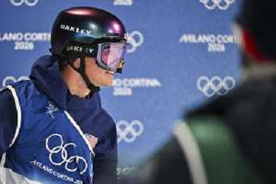 Mac FOREHAND, USA, bib number 9, Action Photo, Men's Freeski Big Air Qualification at Freestyle Olympic Winter Games 2025-26 in Milano-Cortina, Italy, 2026-02-15, Photo Credit: action press / Naoki Morita / KarmaPress - AGENZIA ALDO LIVERANI SAS ITALY ONLY EDITORIAL USE ONLY