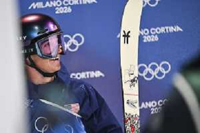 Alex HALL, USA, bib number 3, Action Photo, Men's Freeski Big Air Qualification at Freestyle Olympic Winter Games 2025-26 in Milano-Cortina, Italy, 2026-02-15, Photo Credit: action press / Naoki Morita / KarmaPress - AGENZIA ALDO LIVERANI SAS ITALY ONLY EDITORIAL USE ONLY