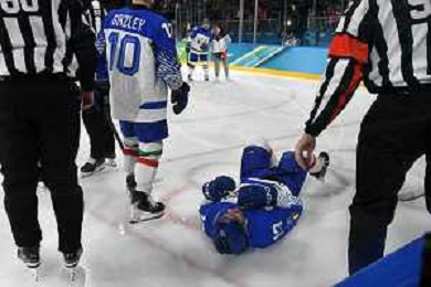 TVPG Olimpiadi invernali Milano Cortina 2026, Ice hockey playoff Svizzera vs Italia, nella foto infortunio a Matt Bradley (Italia), 6/22-02-2026 Milano ©TVPG Pasquale Golia - AGENZIA ALDO LIVERANI SAS