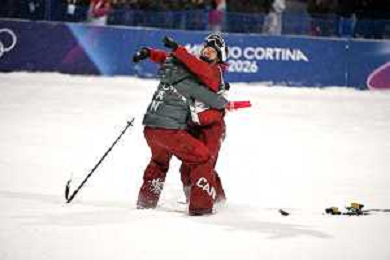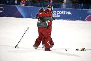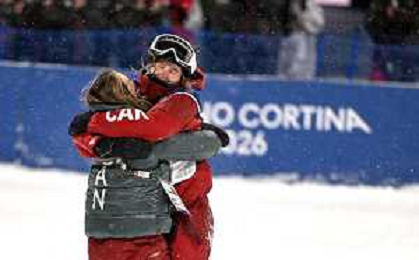 Megan OLDHAM, CAN, Bib Number 4, Winner Photo, Naomi URNESS, CAN, Bib Number 11, Women's Freeski Big Air at Freestyle Olympic Winter Games 2025-26 in Milano-Cortina, Italy, 2026-02-16, Photo Credit: action press / Christian Stadler/ KarmaPress - AGENZIA ALDO LIVERANI SAS ITALY ONLY EDITORIAL USE ONLY