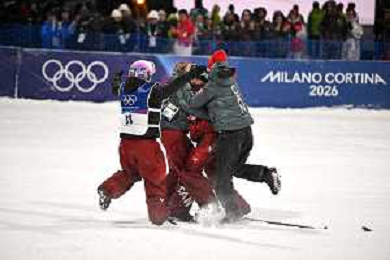 Megan OLDHAM, CAN, Bib Number 4, Winner Photo, Women's Freeski Big Air at Freestyle Olympic Winter Games 2025-26 in Milano-Cortina, Italy, 2026-02-16, Photo Credit: action press / Christian Stadler/ KarmaPress - AGENZIA ALDO LIVERANI SAS ITALY ONLY EDITORIAL USE ONLY