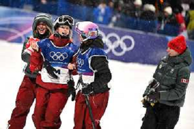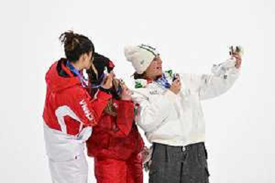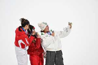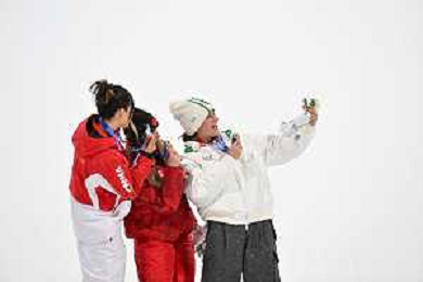 Megan OLDHAM, CAN, Bib Number 4, Winner Photo, Ailing Eileen GU, CHN, Bib Number 10, Winner Photo, Naomi URNESS, CAN, Bib Number 11, Women's Freeski Big Air at Freestyle Olympic Winter Games 2025-26 in Milano-Cortina, Italy, 2026-02-16, Photo Credit: action press / Christian Stadler/ KarmaPress - AGENZIA ALDO LIVERANI SAS ITALY ONLY EDITORIAL USE ONLY