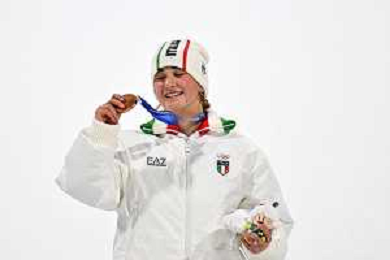 Flora TABANELLI, ITA, Bib Number 1, Podium Photo, Women's Freeski Big Air at Freestyle Olympic Winter Games 2025-26 in Milano-Cortina, Italy, 2026-02-16, Photo Credit: action press / Christian Stadler/ KarmaPress - AGENZIA ALDO LIVERANI SAS ITALY ONLY EDITORIAL USE ONLY