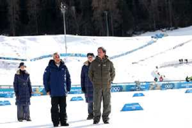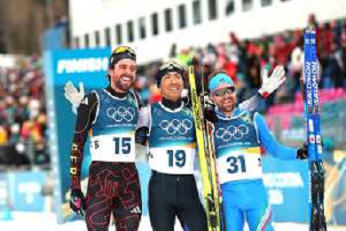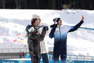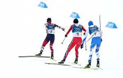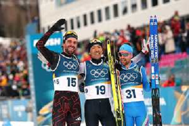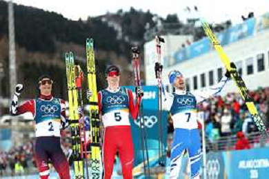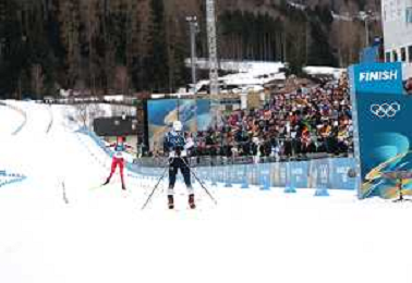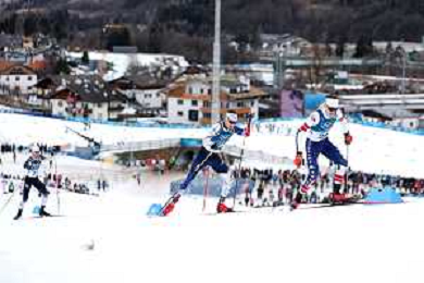 Benjamin LOOMIS, USA, Bib Number 22, Run 2, Action Photo, Mael TYRODE, FRA, Bib Number 24, Run 2, Action Photo, Jiawen ZHAO, CHN, Bib Number 23, Run 2, Action Photo, Men's Individual Gundersen Large Hill HS141/10,0 Km at Nordic Combined Olympic Winter Games 2025-26 in Milano Cortina, Italy, 2026-02-17, Photo Credit: action press / Julia Piatkowska/ KarmaPress - AGENZIA ALDO LIVERANI SAS ITALY ONLY EDITORIAL USE ONLY