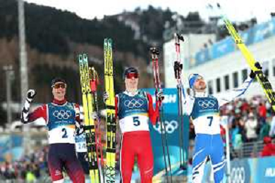 Jens Luraas OFTEBRO, NOR, Bib Number 5, Run 2, Action Photo, Johannes LAMPARTER, AUT, Bib Number 2, Ilkka HEROLA, FIN, Bib Number 7, , Men's Individual Gundersen Large Hill HS141/10,0 Km at Nordic Combined Olympic Winter Games 2025-26 in Milano Cortina, Italy, 2026-02-17, Photo Credit: action press / Julia Piatkowska/ KarmaPress - AGENZIA ALDO LIVERANI SAS ITALY ONLY EDITORIAL USE ONLY