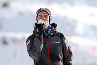 Jens Luraas OFTEBRO, NOR, Bib Number 5, Podium Photo,, Men's Individual Gundersen Large Hill HS141/10,0 Km at Nordic Combined Olympic Winter Games 2025-26 in Milano Cortina, Italy, 2026-02-17, Photo Credit: action press / Julia Piatkowska/ KarmaPress - AGENZIA ALDO LIVERANI SAS ITALY ONLY EDITORIAL USE ONLY