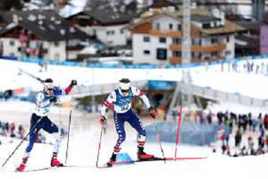 Benjamin LOOMIS, USA, Bib Number 22, Run 2, Action Photo, Mael TYRODE, FRA, Bib Number 24, Run 2, Action Photo, , Men's Individual Gundersen Large Hill HS141/10,0 Km at Nordic Combined Olympic Winter Games 2025-26 in Milano Cortina, Italy, 2026-02-17, Photo Credit: action press / Julia Piatkowska/ KarmaPress - AGENZIA ALDO LIVERANI SAS ITALY ONLY EDITORIAL USE ONLY