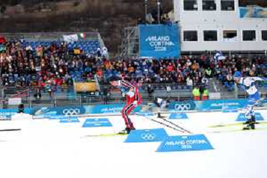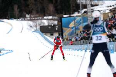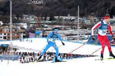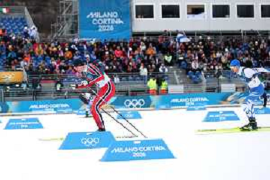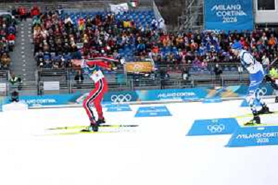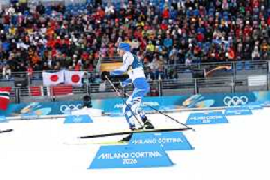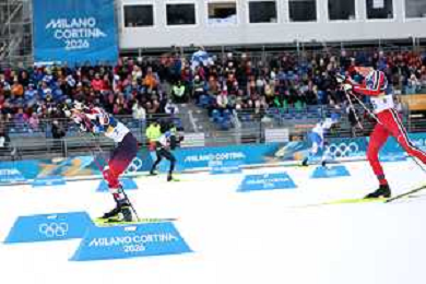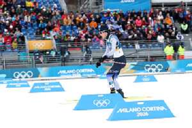Samuel COSTA, ITA, Bib Number 28, Run 2, Action Photo, Men's Individual Gundersen Large Hill HS141/10,0 Km at Nordic Combined Olympic Winter Games 2025-26 in Milano Cortina, Italy, 2026-02-17, Photo Credit: action press / Julia Piatkowska/ KarmaPress - AGENZIA ALDO LIVERANI SAS ITALY ONLY EDITORIAL USE ONLY
