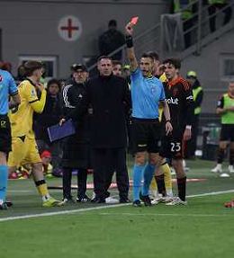 ARBITRO MAURIZIO MARIANI ESTRAE IL CARTELLINO ROSSO PER L’ESPULSIONE DI MASSIMILIANO ALLEGRI -Milan vs Como Campionato Calcio Serie A 18-02-2026 ©PAOLO GIAMPIETRI - AGENZIA ALDO LIVERANI SAS