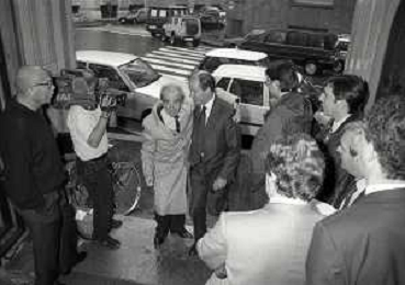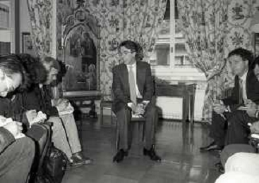 NEG-1995 MILANO VIA SERBELLONI CONSIGLIO INTER NELLA FOTO MASSIMO MORATTI CON I GIORNALISTI AG ALDO LIVERANI SAS