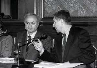 NEG-1995-1996 MILANO PRESENTAZIONE INTER CAMPUS NELLA FOTO GIANFRANCO MATTEOLI E SANDRO MAZZOLA AG ALDO LIVERANI SAS