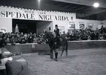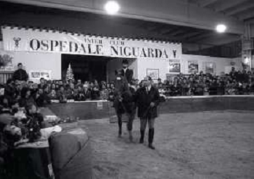 NEG-1994 MILANO OSPEDALE NIGUARDA I GIOCATORI DELL'FC INTER VISITANO IL CENTRO DI RIABILITAZIONE EQUESTRE “VITTORIO DI CAPUA“ NELLA FOTO ERNESTO PELLEGRINI AG ALDO LIVERANI SAS