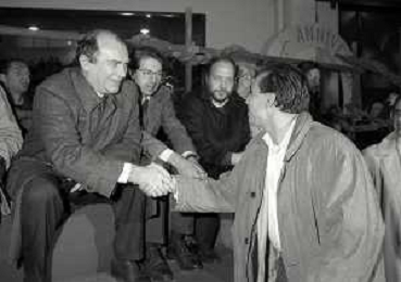 NEG-1994 MILANO OSPEDALE NIGUARDA I GIOCATORI DELL'FC INTER VISITANO IL CENTRO DI RIABILITAZIONE EQUESTRE “VITTORIO DI CAPUA“ NELLA FOTO RUBEN SOSA E ERNESTO PELLEGRINI AG ALDO LIVERANI SAS