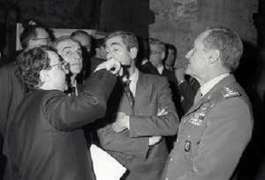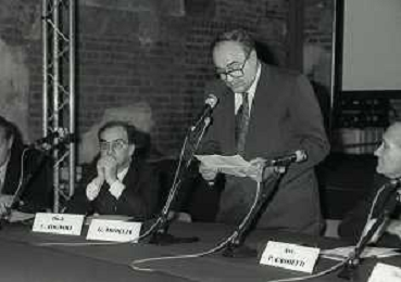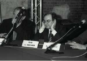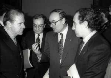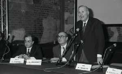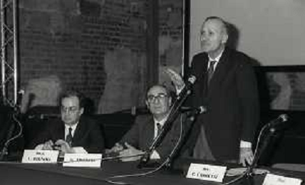 NEG- 1990 MILANO PRESENTAZIONE DELLA COPPA DEL MONDO DI CALCIO NELLA FOTO CARLO TOGNOLI CON PAOLO PILLITTERI E GIANFRANCO TROIELLI AG ALDO LIVERANI SAS