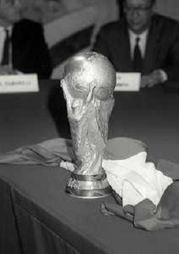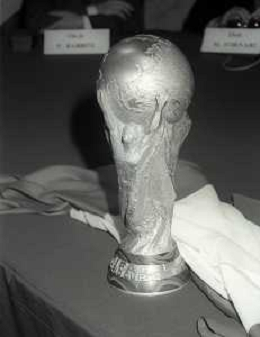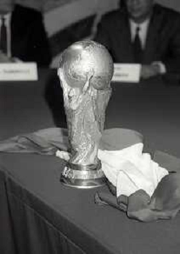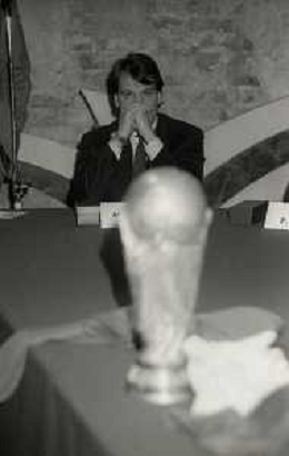 NEG- 1990 MILANO PRESENTAZIONE DELLA COPPA DEL MONDO DI CALCIO NELLA FOTO LA COPPA DEL MONDO AG ALDO LIVERANI SAS