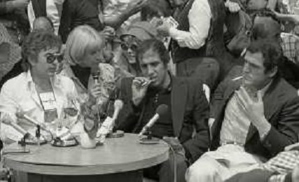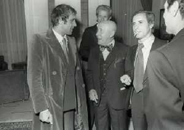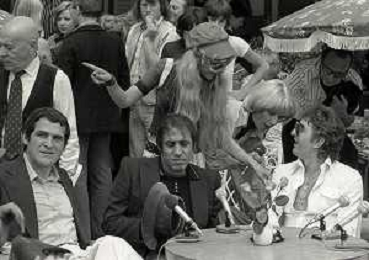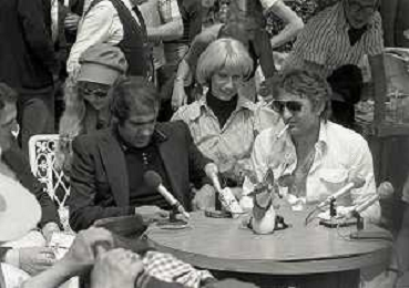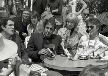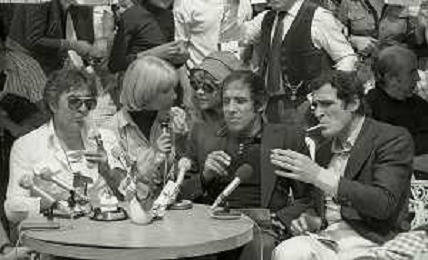 NEG-RETROSPETTIVA ADRIANO CELENTANO ATTORE E CANTANTE NELLA FOTO ADRIANO CELENTANO CON GINO SANTERCOLE AL FESTIVAL DI CANNES NELL'ANNO 1975 PRESENTA IL FILM “ YUPPI DU “ AG ALDO LIVERANI SAS