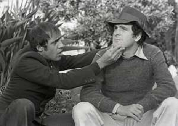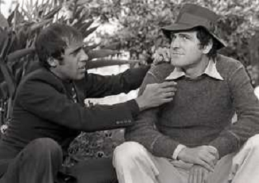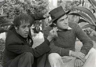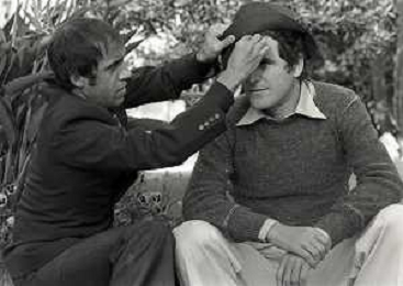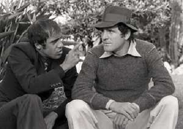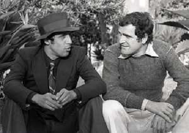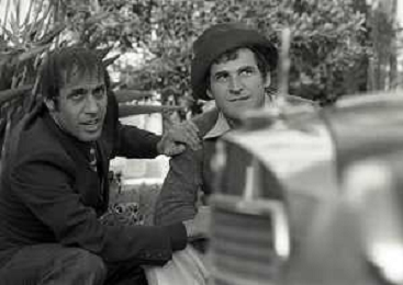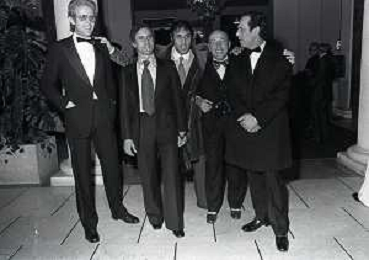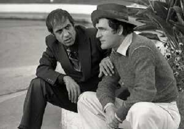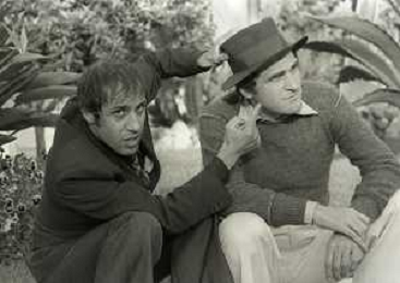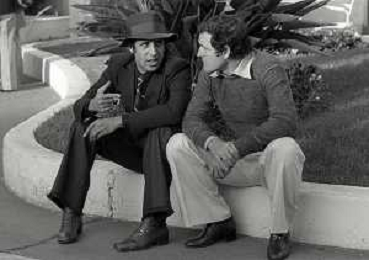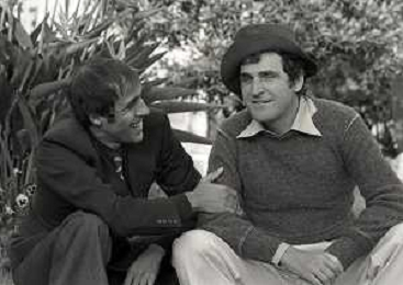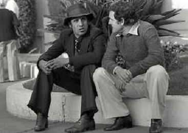 NEG-RETROSPETTIVA ADRIANO CELENTANO ATTORE E CANTANTE NELLA FOTO ADRIANO CELENTANO CON GINO ANTEROLE AL FESTIVAL DI CANNES NELL'ANNO 1975 PRESENTA IL FILM “ YUPPI DU “ AG ALDO LIVERANI SAS